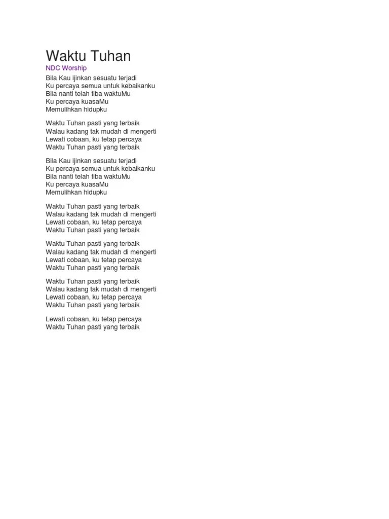 Kuyakin percaya ada waktunya tuhan semuakan indah pada waktunya. Waktu tuhan herry priyonggo di dalam hidup ini semua ada waktunya ada waktunya kita menabur ada waktu menuai mungkin dalam hidupmu badai datang menyerbu Lyrics waktu tuhan (live) by ndc worship: verse bila kau ijinkan sesuatu terjadi. Kemudian lagu ini dipopulerkan oleh .